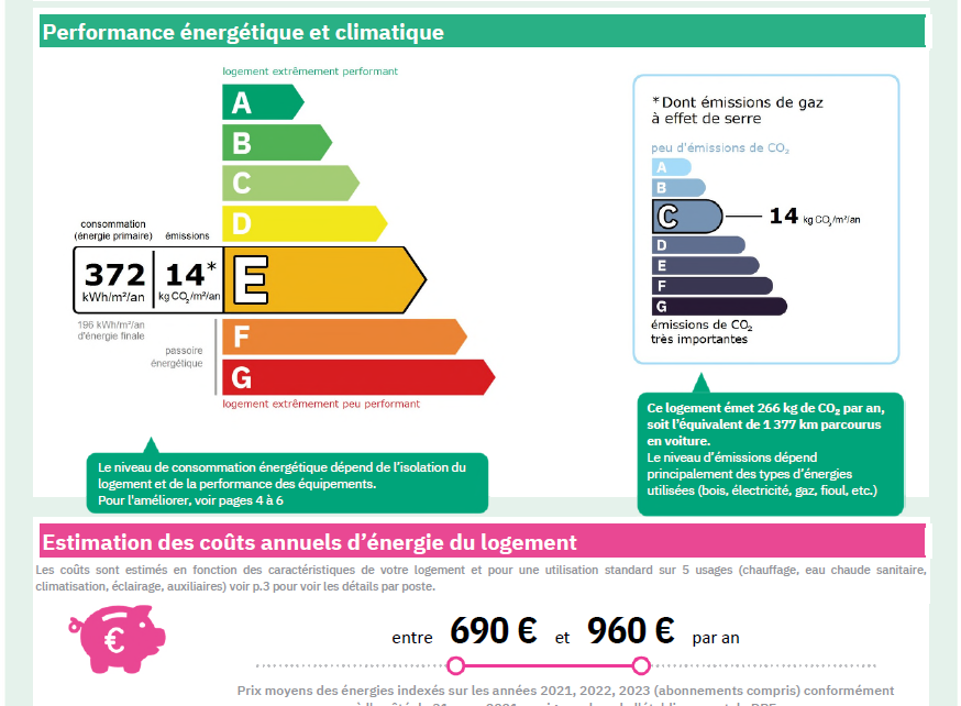 en cours – Date du diag : 25/02/2026 – Valeur basse : 690.00 € – Valeur haute : 960.00 € – Année réf DPE : 2023