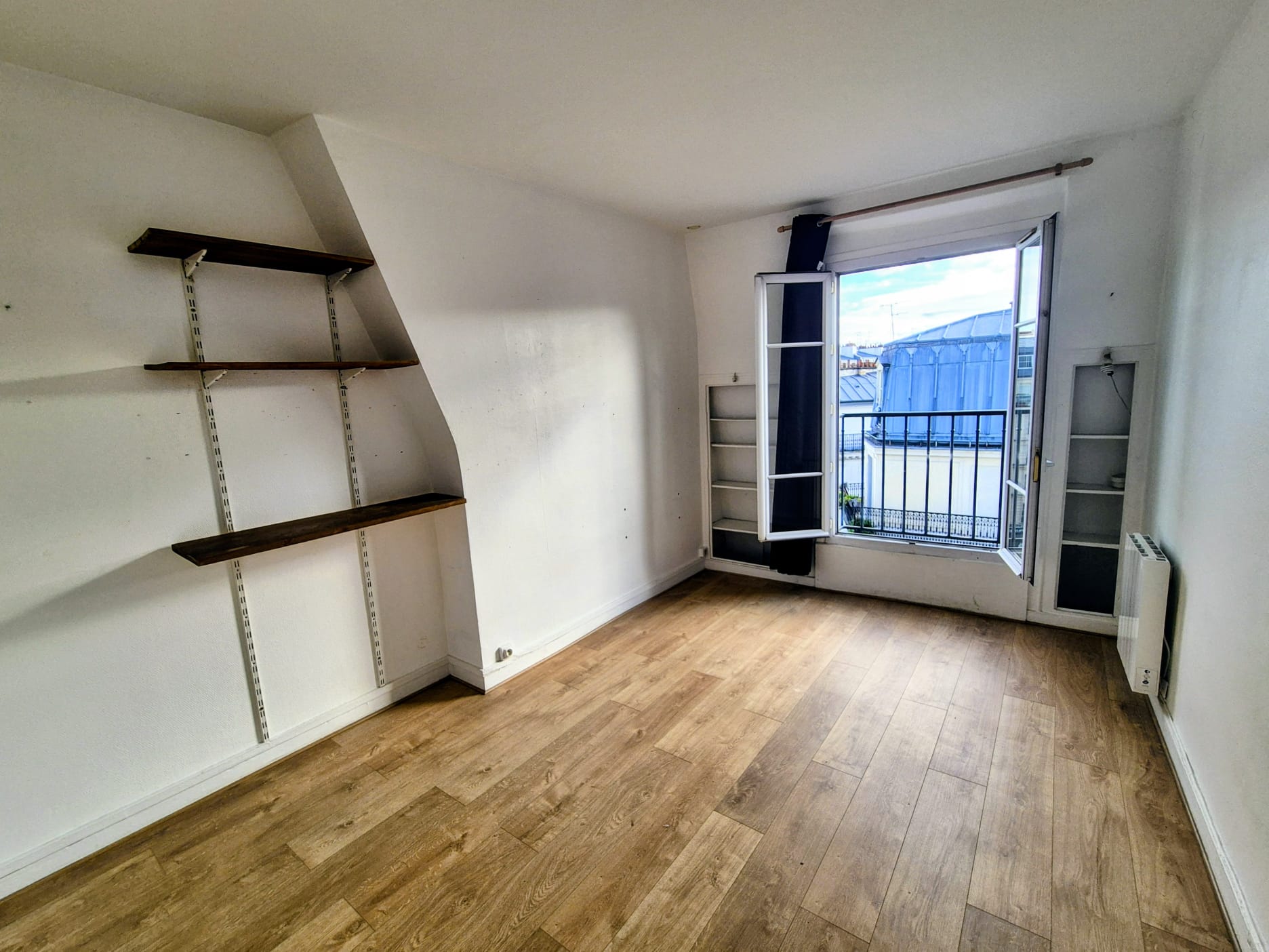 Paris 18eme dans un immeuble ancien de la rue Doudeauville proche du Boulevard Barbès au 6ème étage avec ascenseur venez visiter ce studio de 18,14m² comprenant une entrée, une salle d’eau avec WC sani-broyeur, une kitchenette, une pièce avec un balconnet plein sud et une jolie vue sur le sacré coeur. Un rafraichissement est à prévoir.
